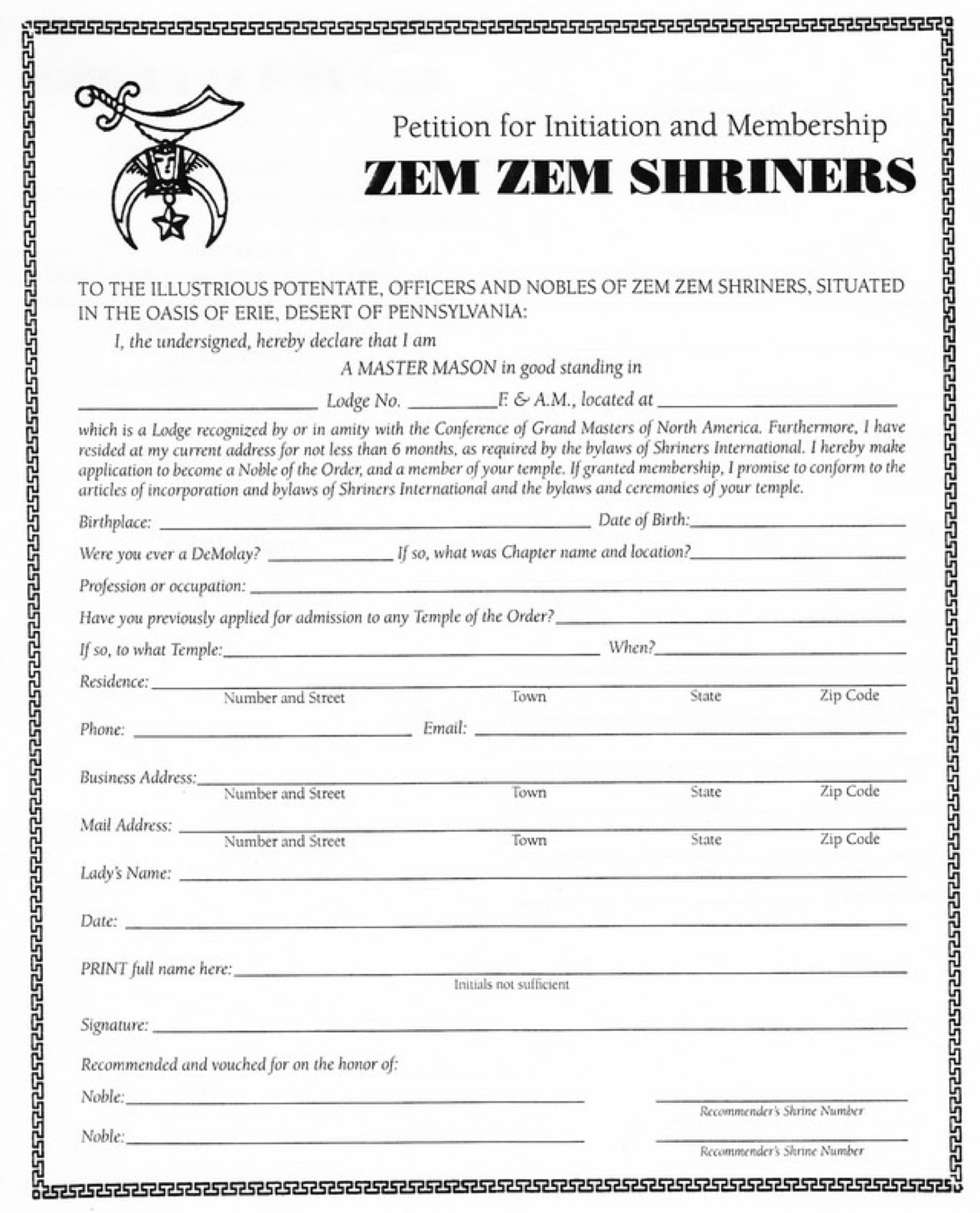 Please Print, Complete And Contact Any Zem Zem Shriner For Further Assistance!