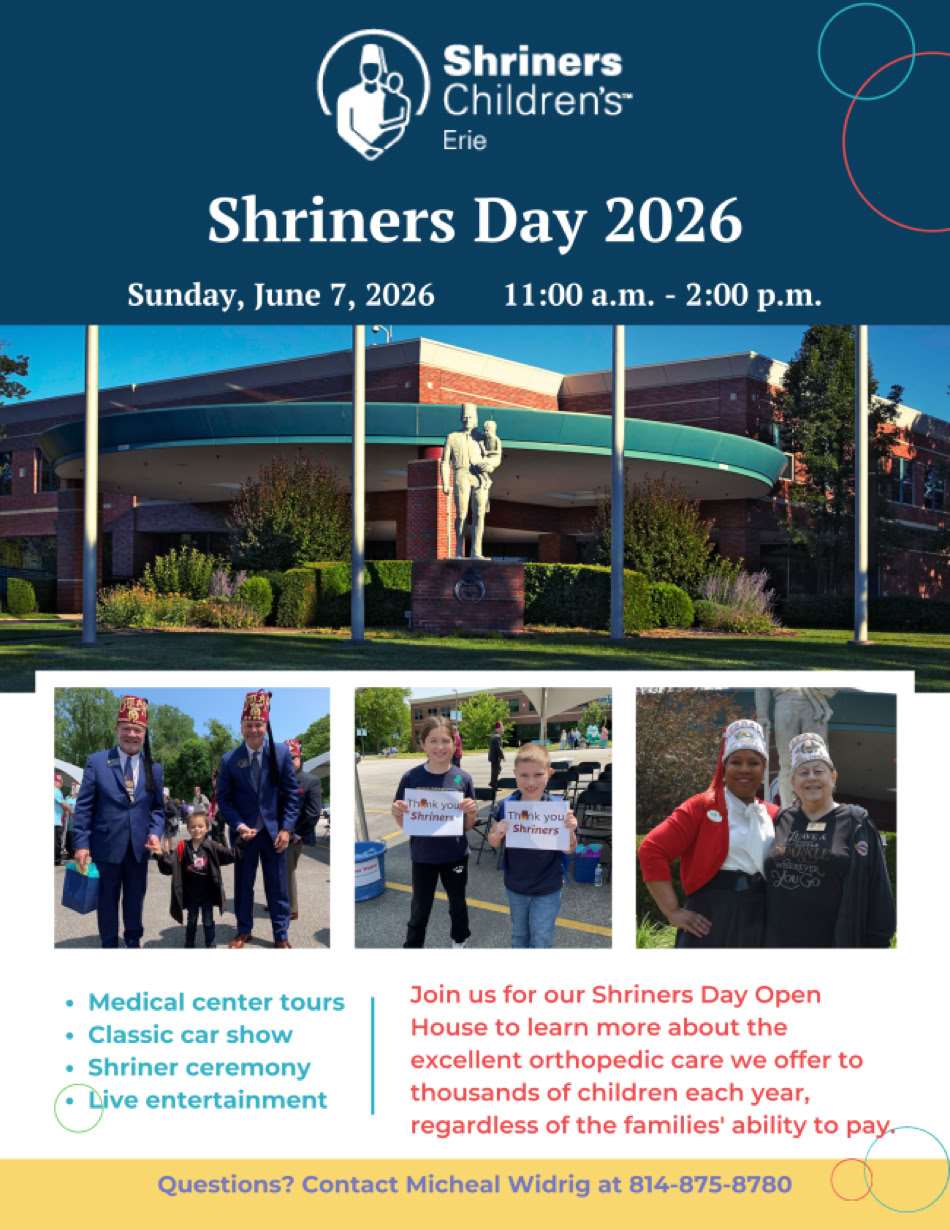 If your club or unit is looking to donate something to Shriners Children’s Erie this year, please take this into consideration.